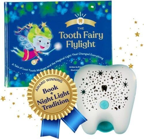 Put a new spin on the tooth fairy with this tooth fairy flylight. New Tooth Fairy Tradition In A Box: Create magical memories and turn every lost tooth into a celebration! The book is the perfect bedtime story each night of a wiggly tooth, leading up to a tooth fairy visit. When the loose tooth finally lets go, place it in the magical Flylight tray, press the button, and watch the magic come to life. Neat, isn’t it?! What a fun way to let the tooth fairy know that you lost a tooth. The light is so neat too. It shines on the ceiling or wall, and gives off a nice light. This can help attract the tooth fairy so they know where to go to get the tooth. Of course you can read this book to your child before the tooth fairy comes as well. Get them all ready and prepared for when the tooth fairy comes to take their tooth. Such a fun way to have the tooth fairy come.
