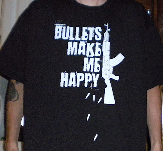 Who loves gun shirts in your family? Well in mine it is hubby’s best friend who is like a brother to him. When I told him I had an AK-47 T-Shirt to review he begged for it so we let him have it. He was so happy to get it that the day it arrived in the mail he was here that night to pick the shirt up after he got out of work. The next day he called me from work telling me that everyone at his worked liked the “AK-47 Bullets Make Me Happy” T-Shirt . I am here to say my guys love these types of reviews.