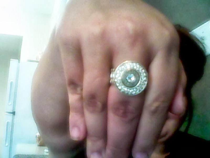 This is the Fire & Ice ring! It retails for $19.95 The ring has a stretchy band. It is a big ring but with the right outfit and nails I think it would be the perfect fit! It does not pinch at all, well not me yet!