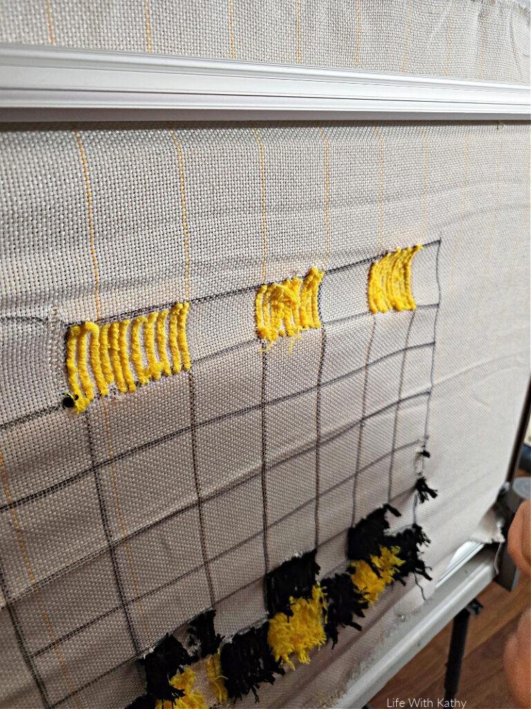 My youngest daughter and I were especially excited to give tufting a try. My daughter actually didn’t need much of my help setting it up at all. She is fourteen, and she put this frame together all by herself. She did a wonderful job. We did forget to adjust it and get the sides tightened at first, but after we did that, it was so much easier to work with. Don’t forget to have all the sides tightened, because that really does make a world of difference.