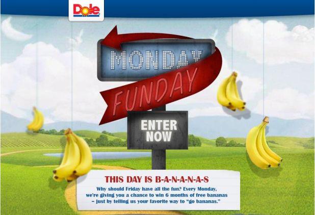 Dole Bananas Monday Funday 28 May, 2012 by KatBp Leave a Comment Head over HERE to enter to win 6 months worth of free bananas