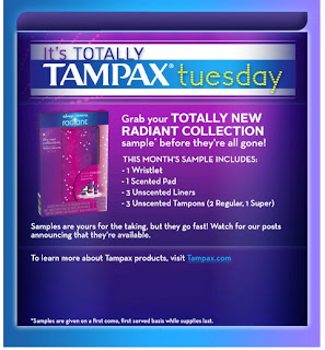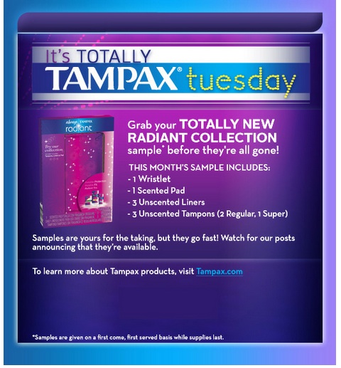 FREE sample of the Radiant Collection 26 June, 2012 by KatBp Leave a Comment Head over HERE for a free sample of the radiant collection from tampax