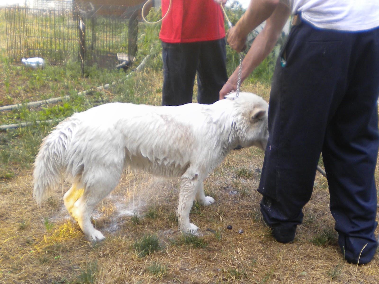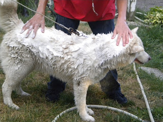 My husband hosed her down and she was sitting there letting him. You can see how white her fur came out.