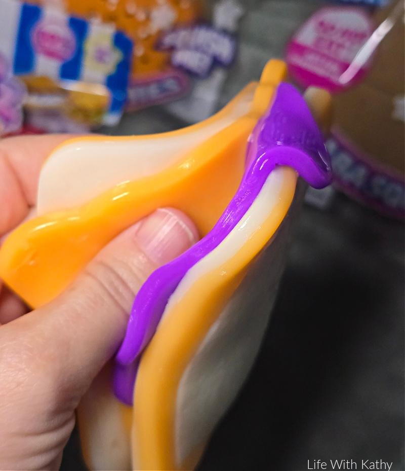 All the colors are so bright and bold, which makes them very attractive. The fact that they are like slime and squishies all rolled in to one, is very entertaining. You get no mess with these either. When I think of slime, I automatically think it’s going to make a mess. This is one of the reasons I love these, because they’re like slime, just without all that mess. Of course they’re like a squishy as well since they squish so well.