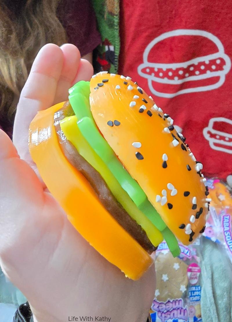 The burger might be one of my favorites, just because of all the layers it has.  You can actually remove all these layers too. You could even put these all together and make some of your very own creations. I think being able to make your own creations is going to be a lot of fun. There are six different squishies, so you can mix and match them all up. It will be interesting to see what everyone can come up with.
