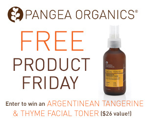 Pangea Free Product Friday Sweepstakes 22 June, 2012 by KatBp Leave a Comment Head over HERE to enter to win Pangea Organics Argentinean Tangerine & Thyme Facial Toner.