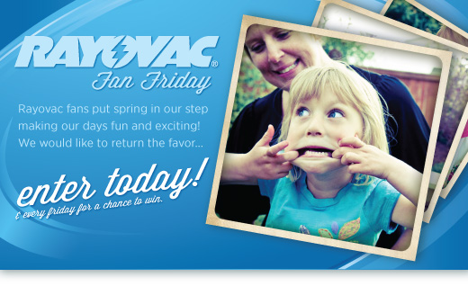 Rayovac Fan Friday 22 June, 2012 by KatBp Leave a Comment Head over HERE to enter in the Rayovac Fan Friday Giveaway for a chance to win a FLW hat and a Rayovac Sportsman Xtreme Flashlight with Batteries