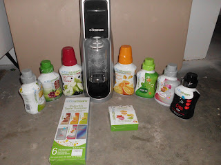 I have had the chance to review a newer product called the Soda Stream. I seen this product in stores awhile ago and i wanted to try it out right away. You can only imagine how excited i was to get to review the Soda Stream! They sent me the soda stream with the CO2, along with 7 big bottles of flavors, a three pack of flavoring for water, and six smaller samples of different flavors. I could not wait to begin! Here is a video about the Soda Stream.