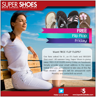 Super Shoes Free Flip Flop Friday 29 June, 2012 by KatBp Leave a Comment Head over HERE to enter to win flip flops from Super Shoes